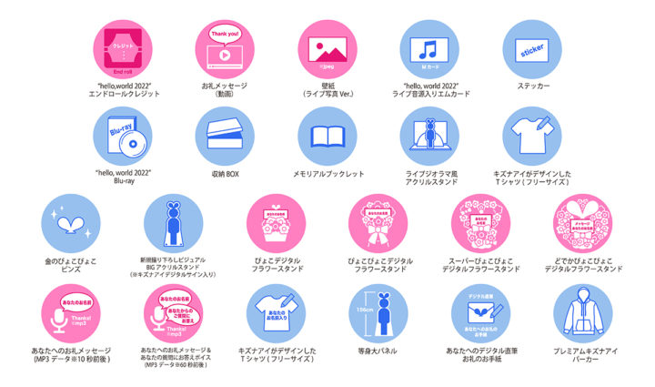 「ステッカー」「Kizuna AI The Last Live “hello, world 2022” Blu-ray」「収納BOX」