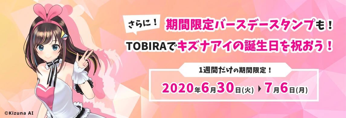 Webブラウザで体験できるARカメラサービス「TOBIRA(トビラ)」×キズナアイのコラボが、6月30日より開始いたします。本コラボでは、キズナアイとのTOBIRAオリジナルスタンプ・フォトフレームを展開されます。
